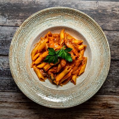 with bacon, onions, tomatoes – spicy!
